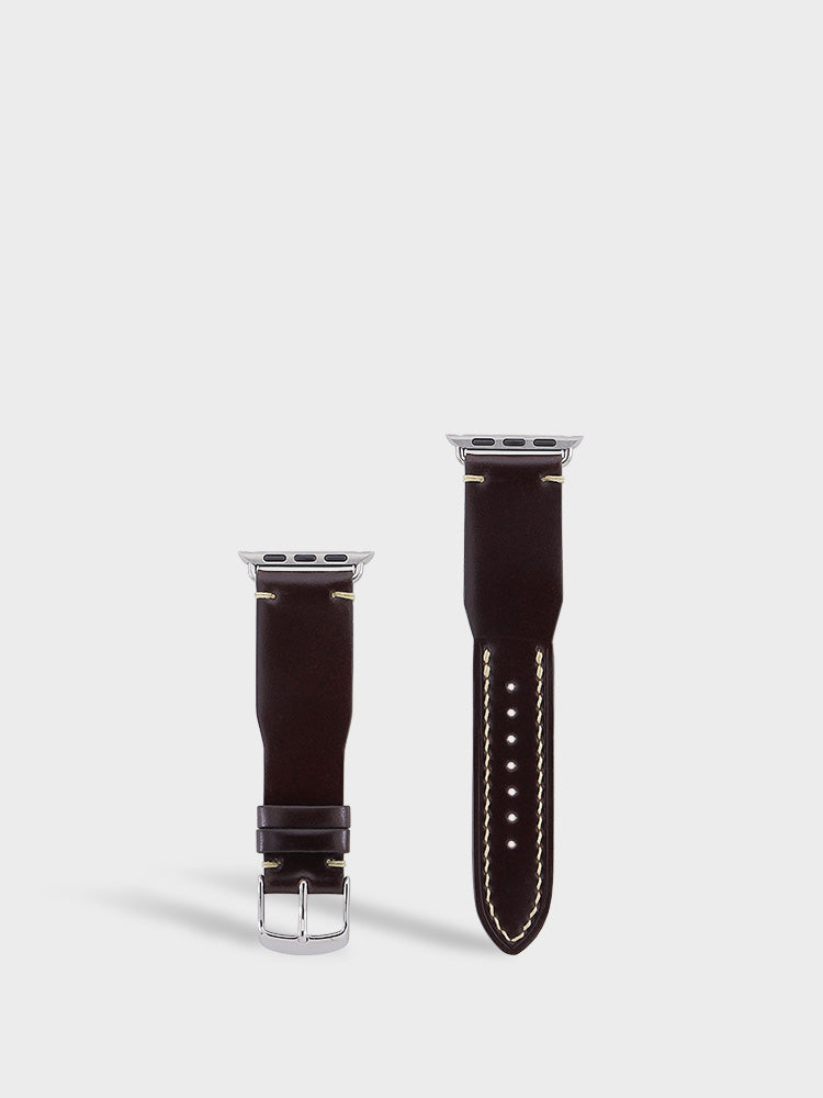 This cordovan leather strap utilizes slide adapters allowing for quick and easy replacement. Made with GANZO's signature Japanese cordovan leather and featuring authentic hand-stitching, this is a truly exceptional item. Choose your preferred leather strap to fit your mood, just like changing your shoes. Enjoy the aging process of the leather as it develops more character with time.