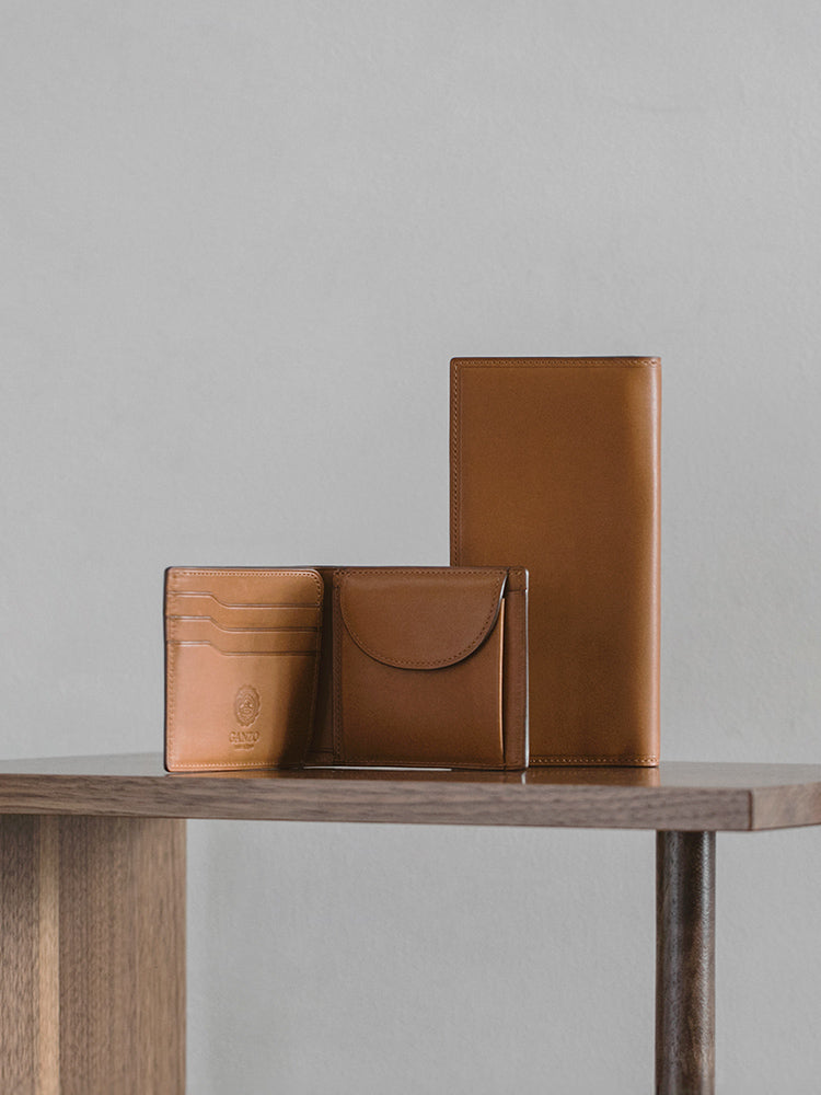 Showcasing the gentle glossiness and texture unique to shell cordovan leather, you will fully enjoy the varying color and luster of products in this series.