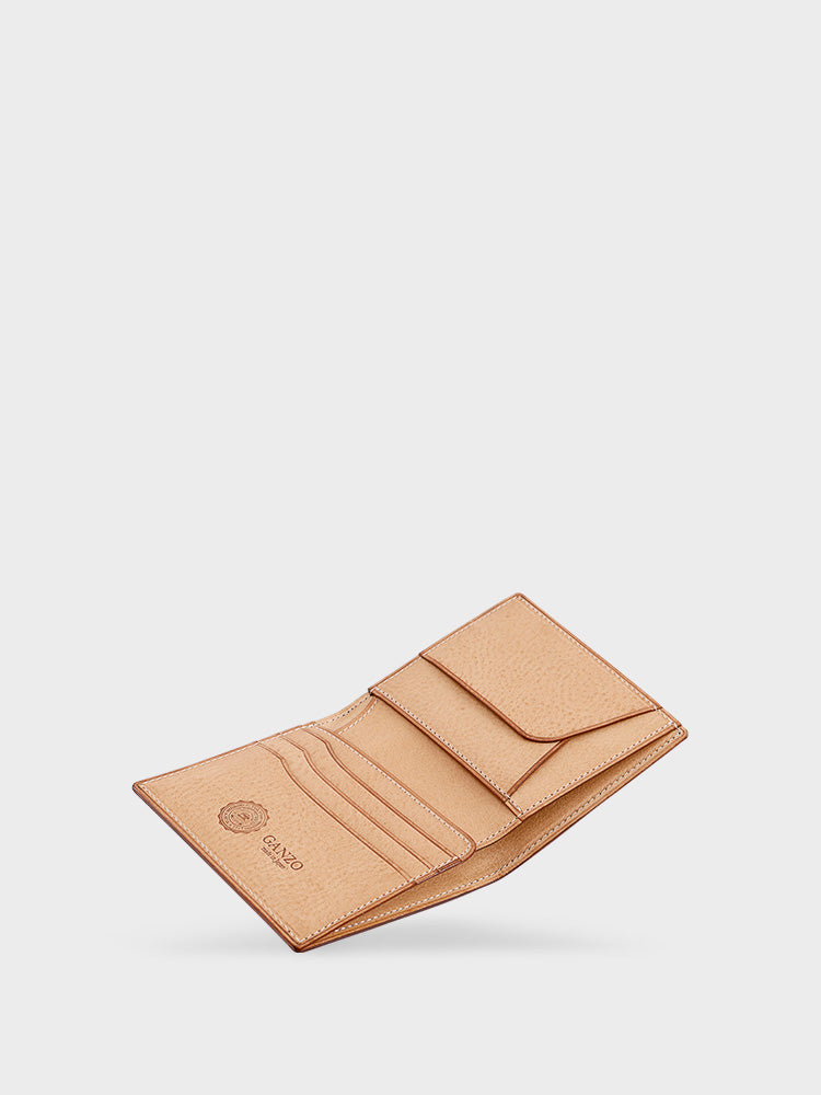 It includes three individual card slots, one multi-pocket for storing multiple cards together, and an additional free pocket for miscellaneous items, offering ample storage despite its compact size. Crafted from durable yet thin leather, this wallet fits comfortably in a pocket while maintaining strength and elegance.