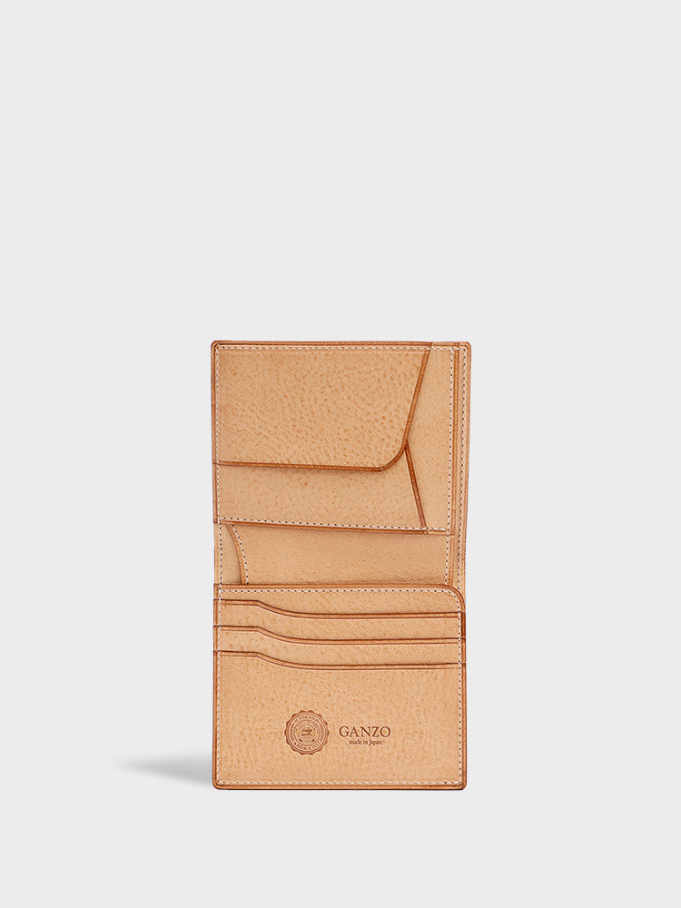 By arranging the card slots vertically, the wallet’s width is brought closer to the size of bills, achieving a roughly 2cm reduction compared to previous models. The front panel features a flap design that improves the opening of the bill compartment, keeping the overall profile slim and streamlined.